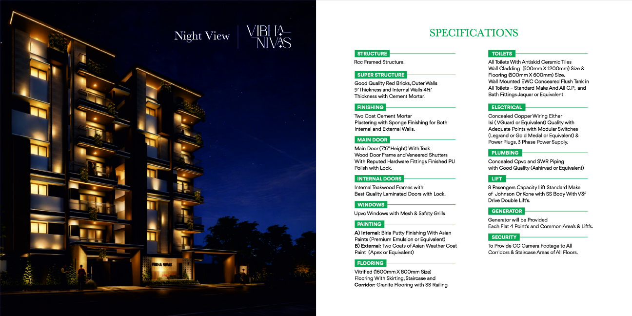 Vibha Nivas is a thoughtfully designed residential project by LaxmiGanesha Developers, offering modern living spaces with superior construction quality, excellent ventilation, and peaceful surroundings.